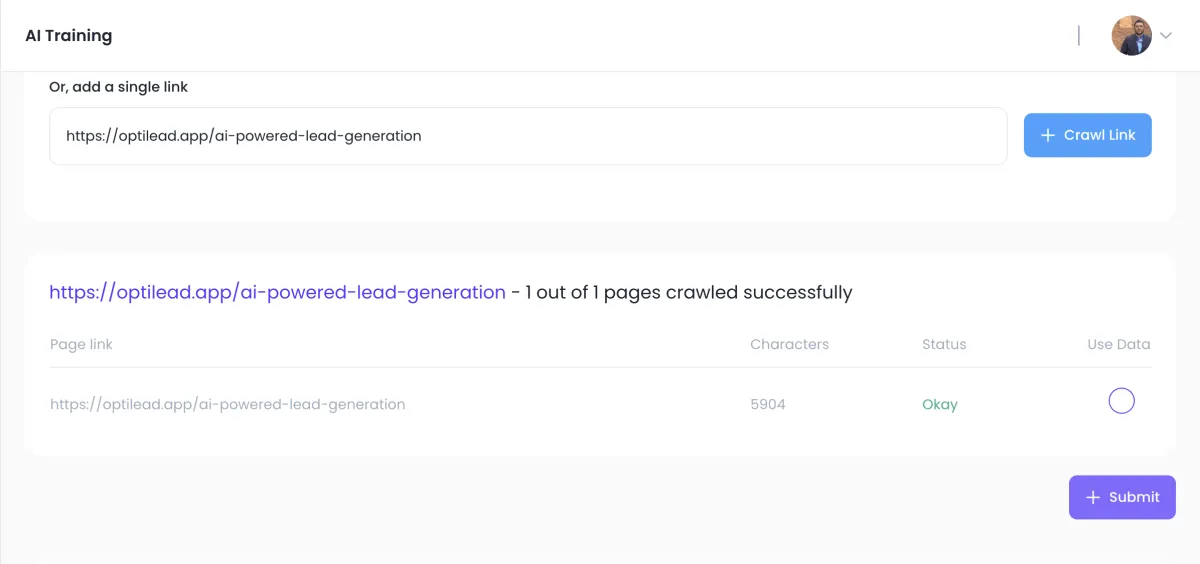 Next, you can select which pages from the website you've uploaded to train the AI on. This will allow it to better understand what your business does, who it serves, and your services.