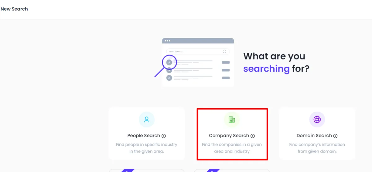 In the Lead Search section, select Company Search to find companies in a specified area and industry.