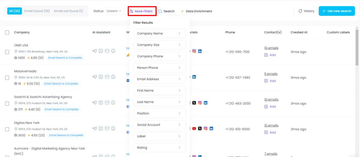 Once filtering is complete, review the refined list of companies and export or manage the data as needed.