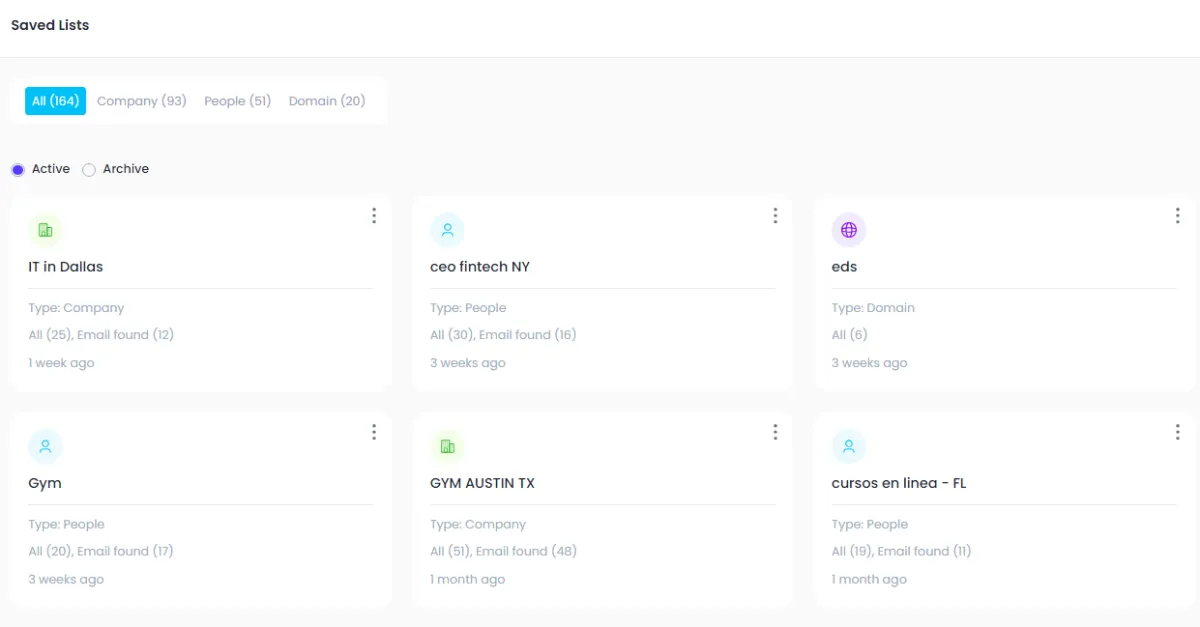 Within your saved list, you’ll see details for each company: