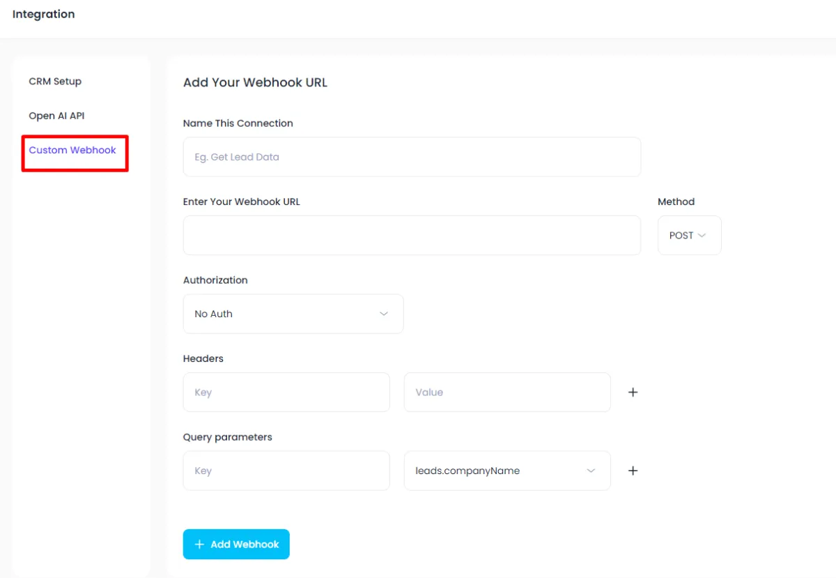 Obtain the web hook URL from your desired third-party application (e.g., Zapier, HubSpot, or Salesforce).